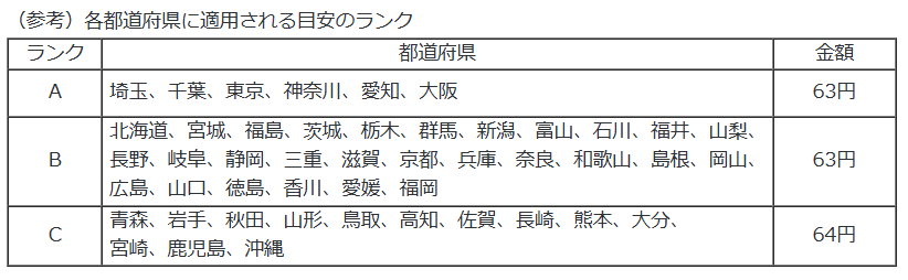 今年は下表の通りA、B、Cランクすべてで引き上げ額が63円以上という大きな改定水準です。